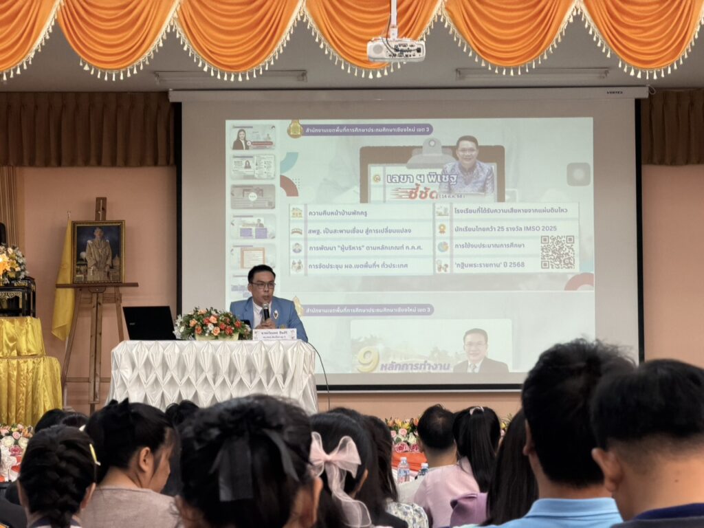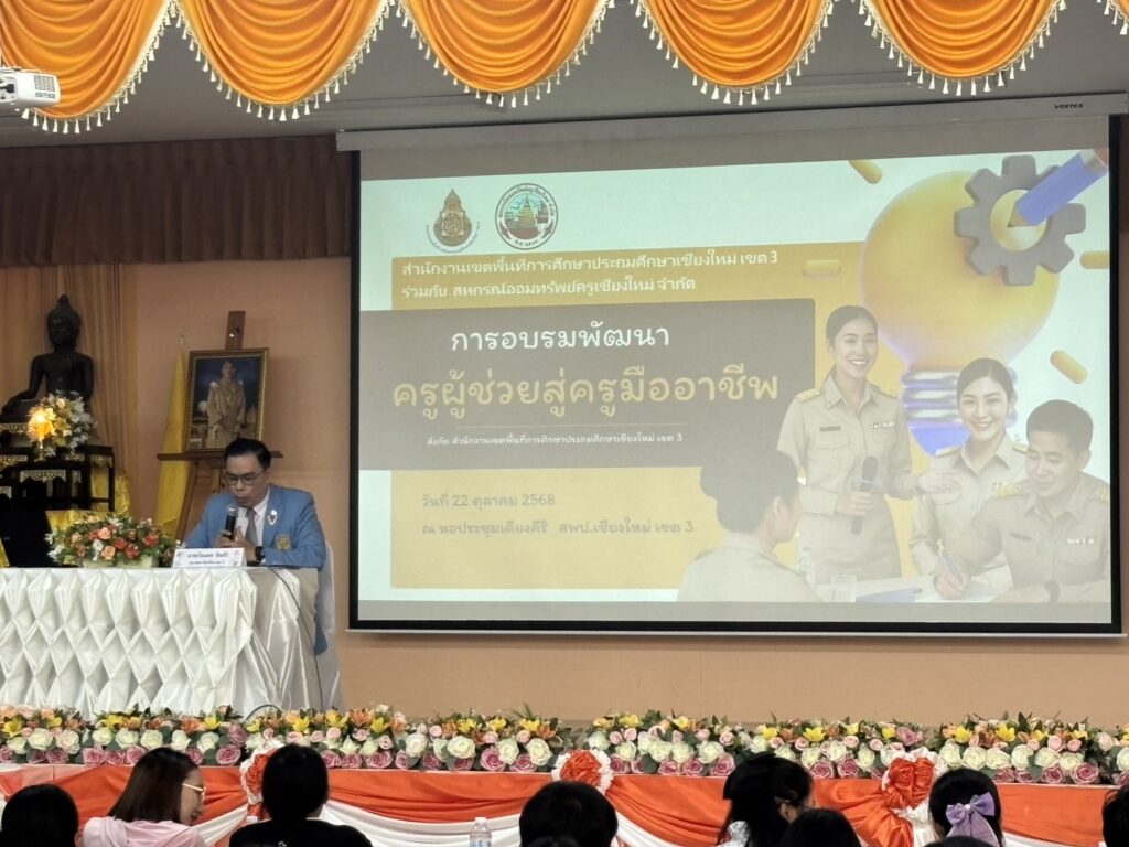 วันที่ 22 ตุลาคม 2568 นายเรืองยศ ปันศิริ ผู้อำนวยการสำนักงานเขตพื้นที่การศึกษาประถมศึกษาเชียงใหม่ เขต 3 เป็นประธานในพิธีเปิดโครงการอบรม “การพัฒนาครูผู้ช่วยสู่ครูมืออาชีพ” ซึ่งสำนักงานเขตพื้นที่การศึกษาประถมศึกษาเชียงใหม่ เขต 3 จัดขึ้นร่วมกับ สหกรณ์ออมทรัพย์ครูเชียงใหม่ จำกัด ณ หอประชุมเคียงศิริ สำนักงานเขตพื้นที่การศึกษาประถมศึกษาเชียงใหม่ เขต 3