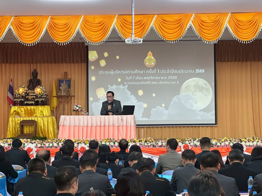 สพป.เชียงใหม่ เขต 3 จัดประชุมผู้บริหารในสังกัด ครั้งที่1/2569 พร้อมร่วมรำลึกในพระมหากรณาธิคุณพระพันปีหลวง พฤศจิกายน 11, 2025 PR1 ภาพกิจกรรม สพป.เชียงใหม่ 3 วันที่ 7 พฤศจิกายน 25 68 นายเรืองยศ ปันศิริ ผอ.สพป เชียงใหม่ เขต 3 เป็นประธานในการประชุมผู้บริหารสถานศึกษา ครั้งที่ 1 ประจำปีงบประมาณ 2569 ซึ่งในโอกาสเดียวกันนี้ คณะ ณ หอประชุมเคียงคีรี สพป.เชียงใหม่ เขต 3 จำนวนผู้เข้าดู: 21